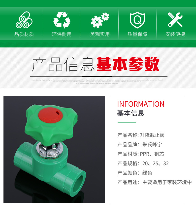 PPR升降截止阀 ppr绿截止阀 ppr卡黄式截止阀:朱氏峰宇PPR双向升降式截止阀,绿精品(小卡簧)20升降截止阀,绿精品(小卡簧)25升降截止阀,绿精品(小卡簧)32升降截止阀,绿精品(小中卡簧)20卡黄升降截止阀,绿精品(小中卡簧)25卡黄升降截止阀,绿精品(小中卡簧)32卡黄升降截止阀,绿精品(中大卡簧)20升降截止阀,绿精品(中大卡簧)25升降截止阀,绿精品(中大簧)32截止阀,绿精品(特大卡簧)20截止阀,绿精品(特大卡簧)25升降截止阀,绿精品(特大卡簧)32截止阀