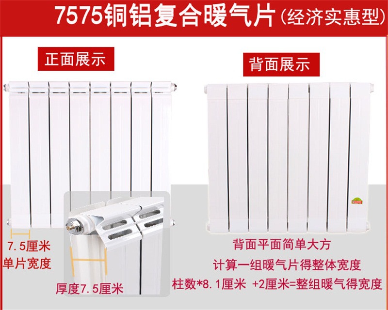 量大从优铜铝复合暖气片:金旭达现代简约壁挂式铜铝复合复合暖气片,静电喷塑75*75 铜管焊接
