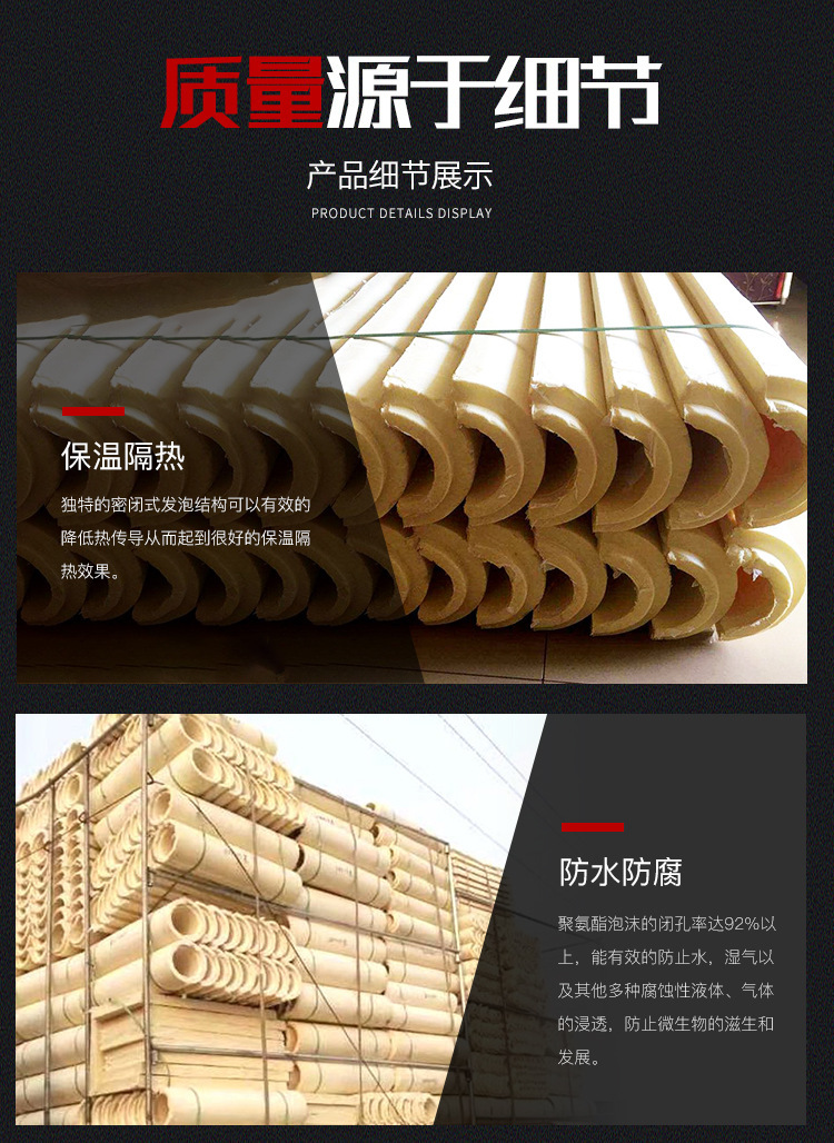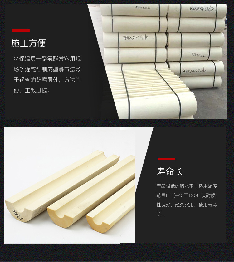 聚氨酯管壳 聚氨酯发泡瓦壳:聚氨酯管壳 聚氨酯发泡瓦壳 B1级聚氨酯瓦壳PIR保冷管壳B2级/B1级微孔状长管219*50,273*50,159*50