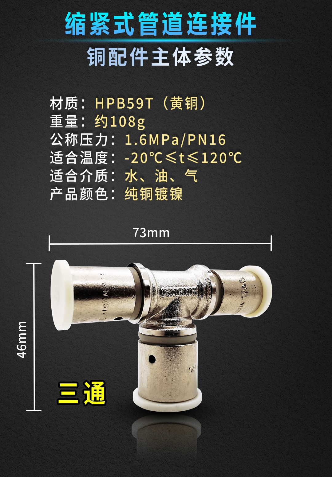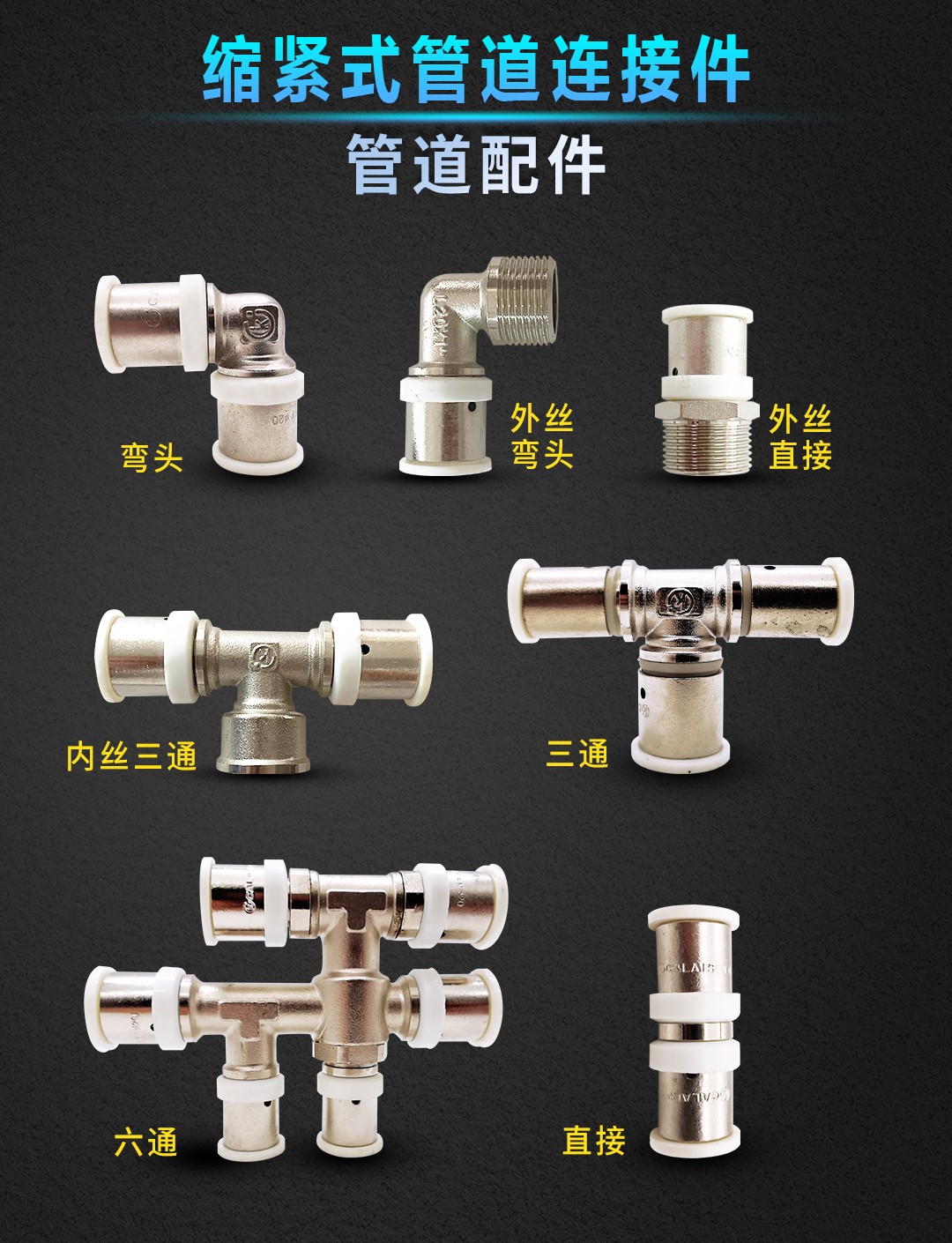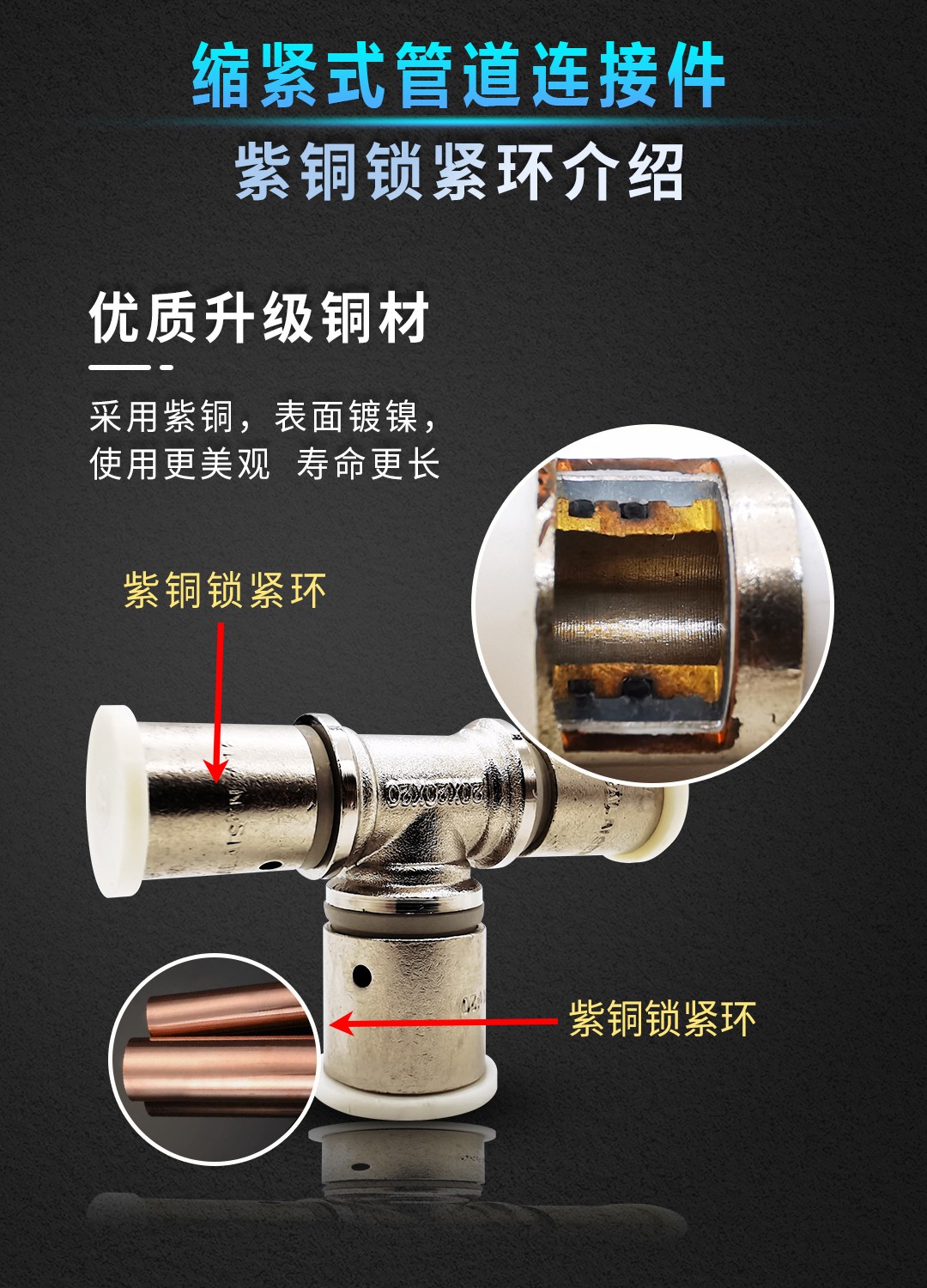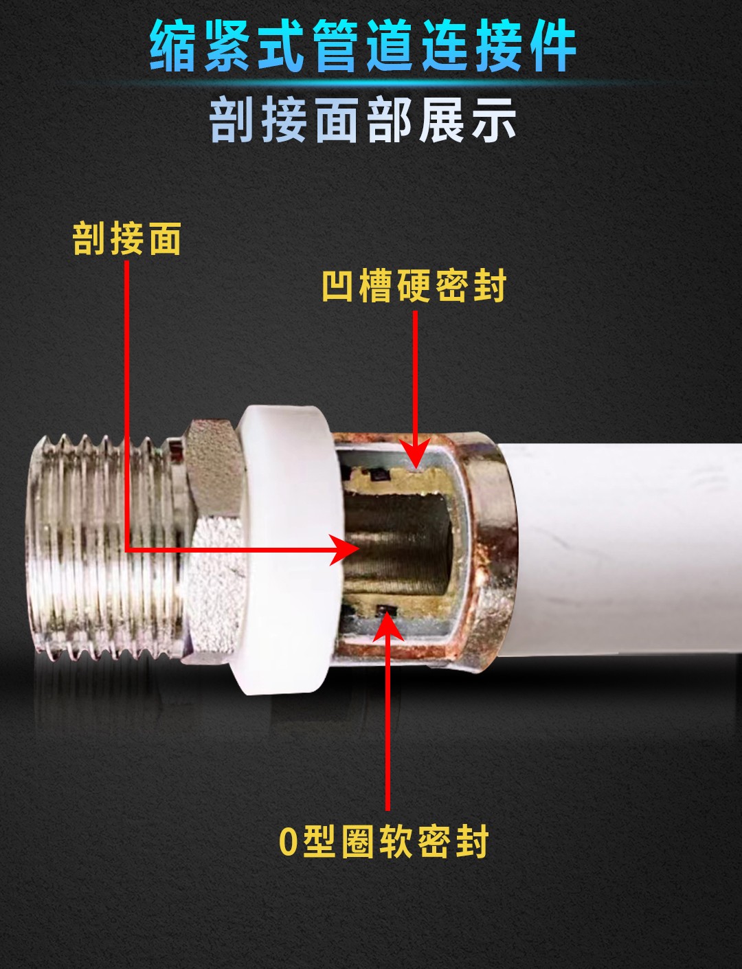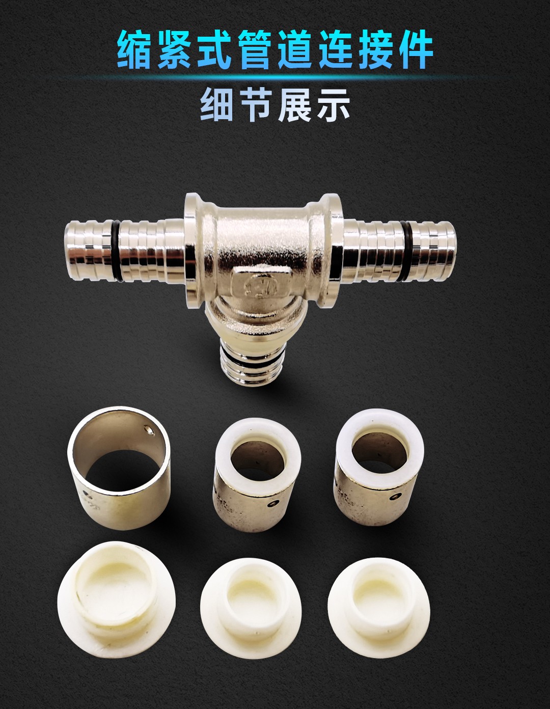 康威斯曼缩紧式管道连接件~内丝直接:有效密封不滴漏,更适于暗埋,安全性更高; O型软密封圈,耐老化,密封效果好,凹槽硬密封; 采用紫铜,表面镀镍,使用更美观,寿命更长。