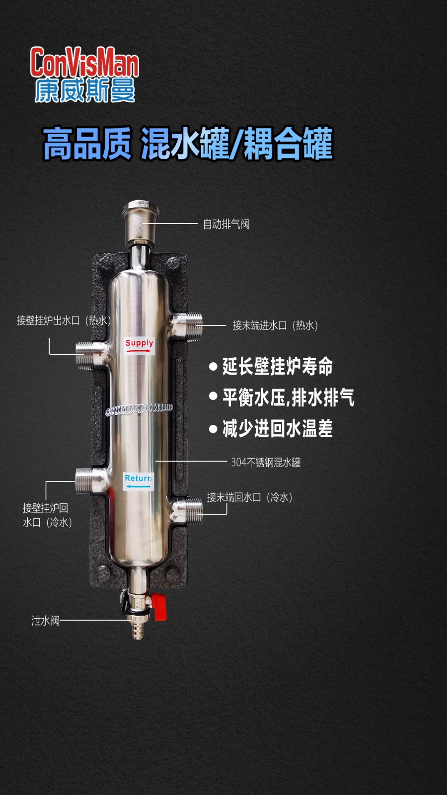 康威斯曼去藕罐 藕合缸:延长壁挂炉寿命,平衡水压,增加系统稳定性,形成二次系统的重要组成部分。