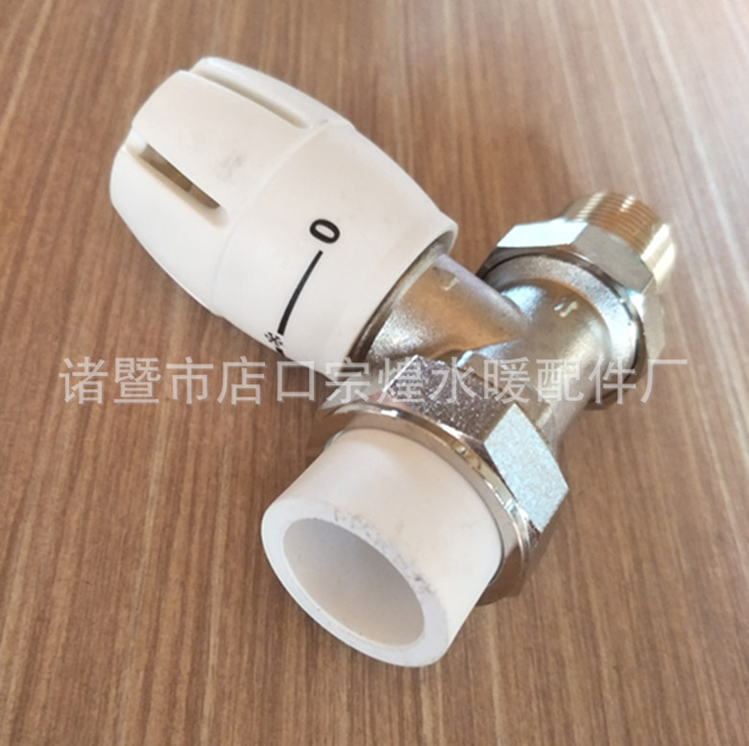 铜镀镍PPR直式角式温控阀 活接卡套式 直式角式手动温控阀: