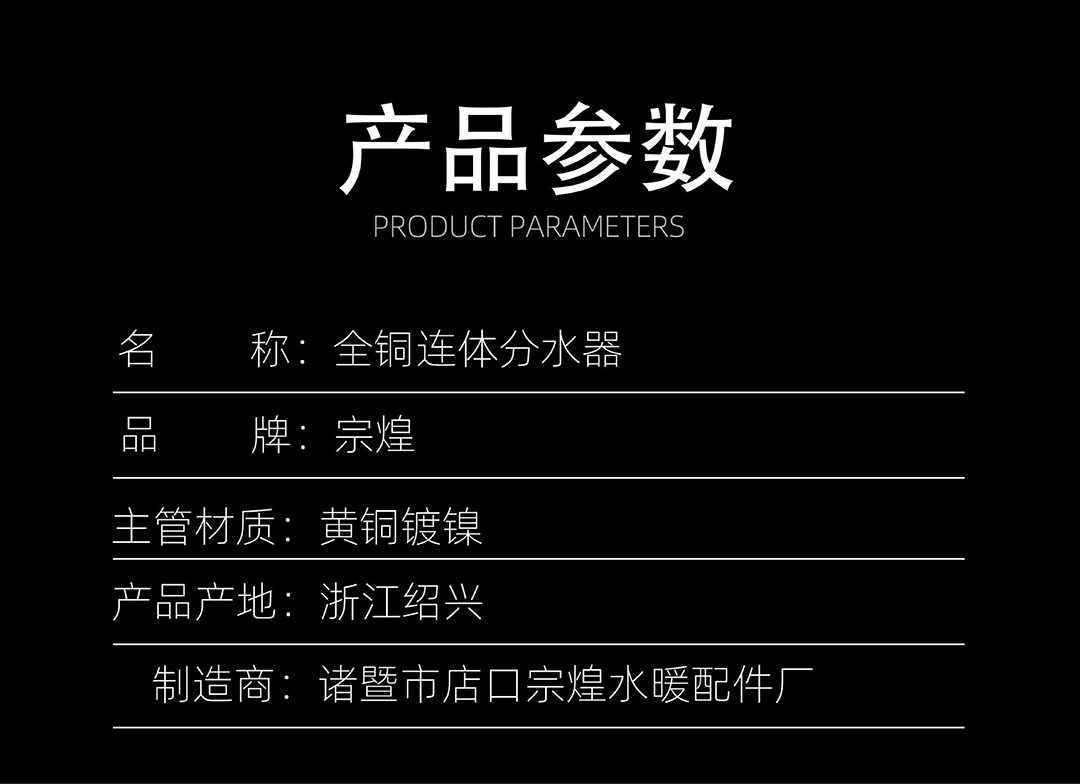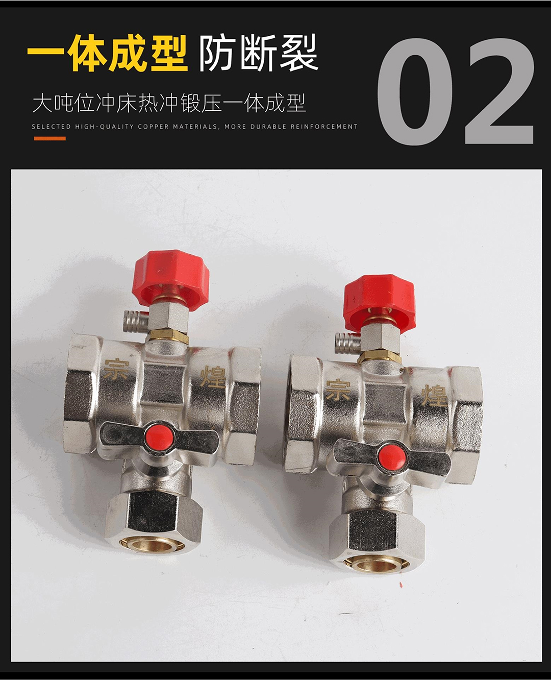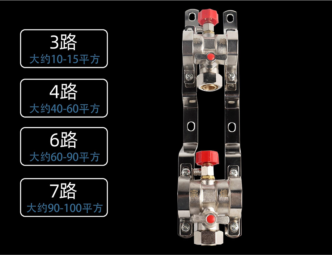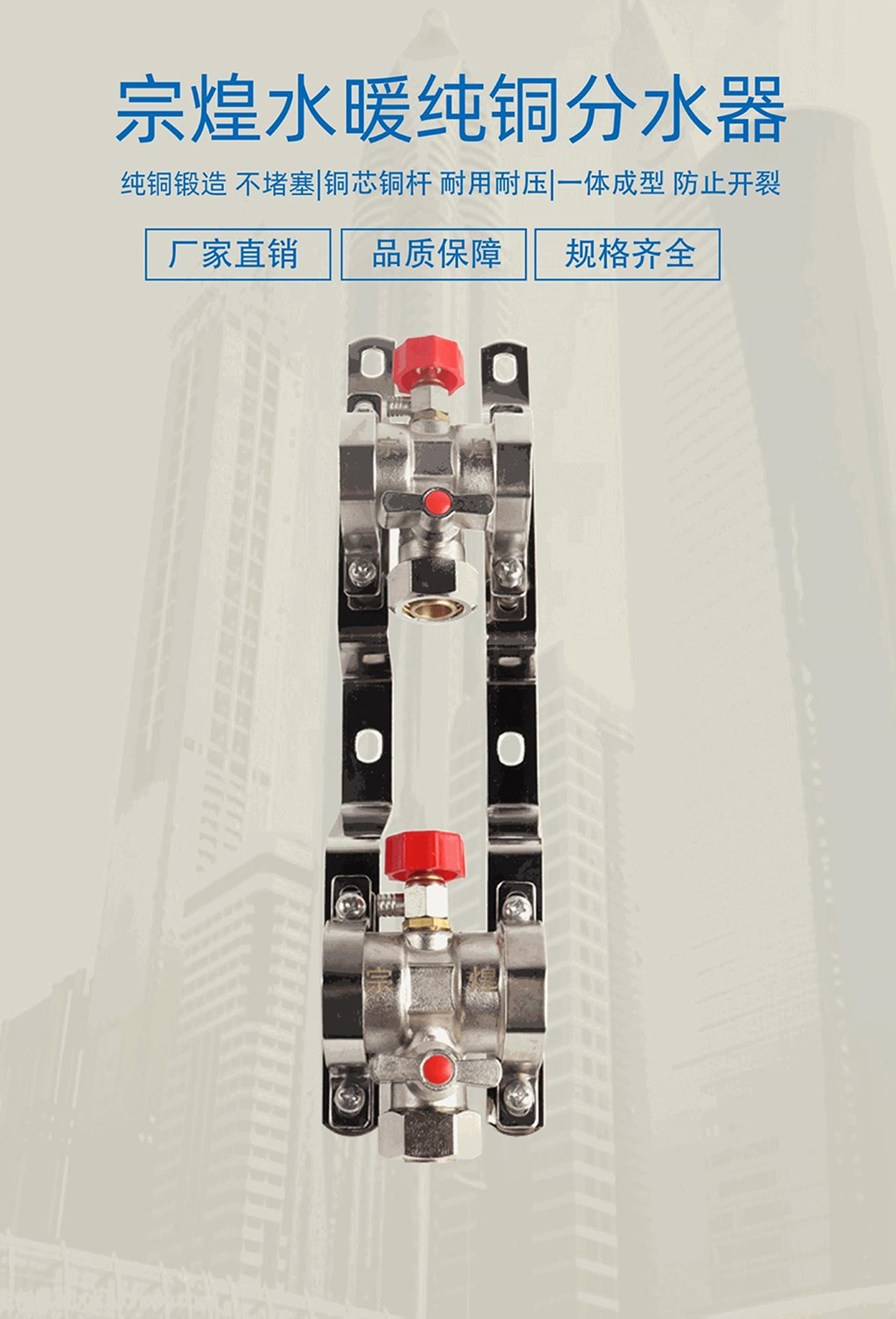 1路黄铜加厚镀镍铜分水器 锻压连体地暖分水器家装地热管分集水器: