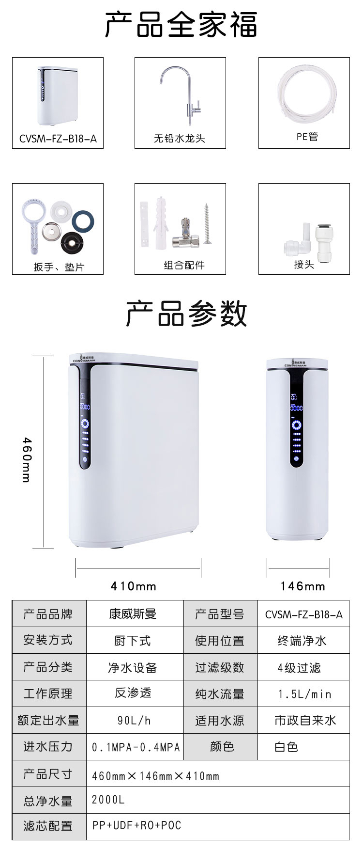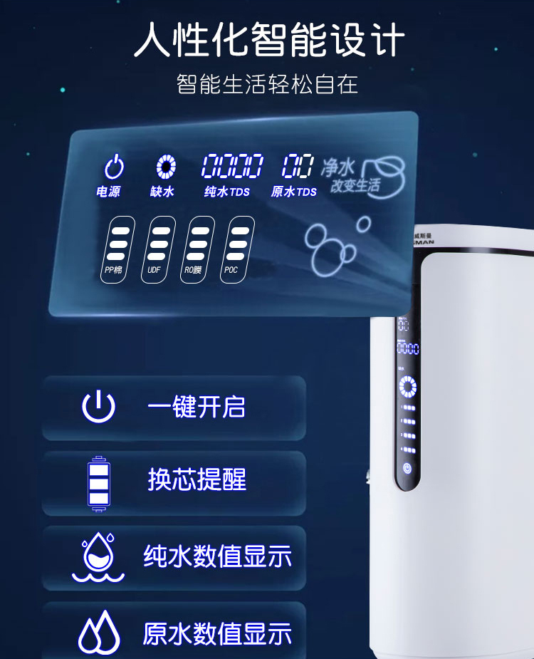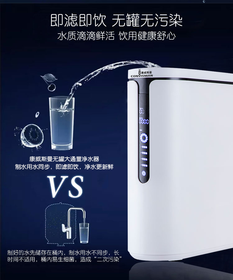 康威斯曼中央直饮机/纯水机:去除水中细菌,病毒,重金属离子,致癌有机物等,满足客户直饮水需求