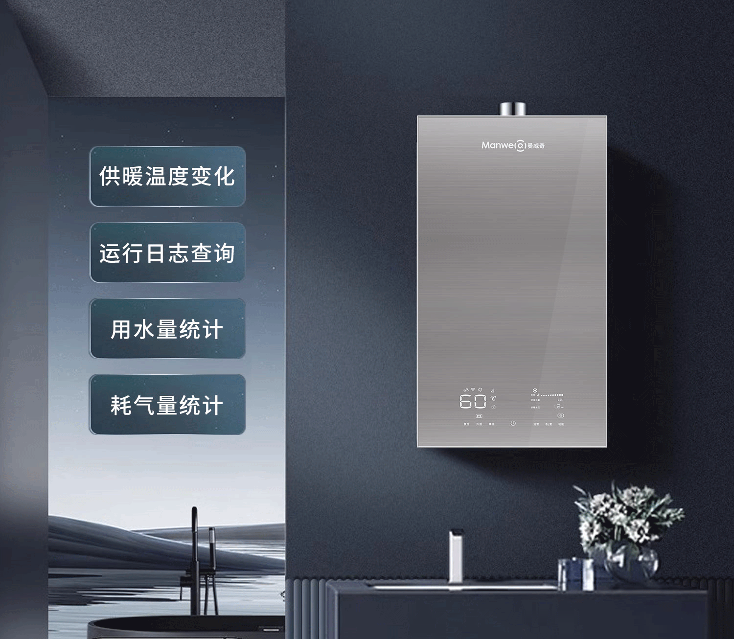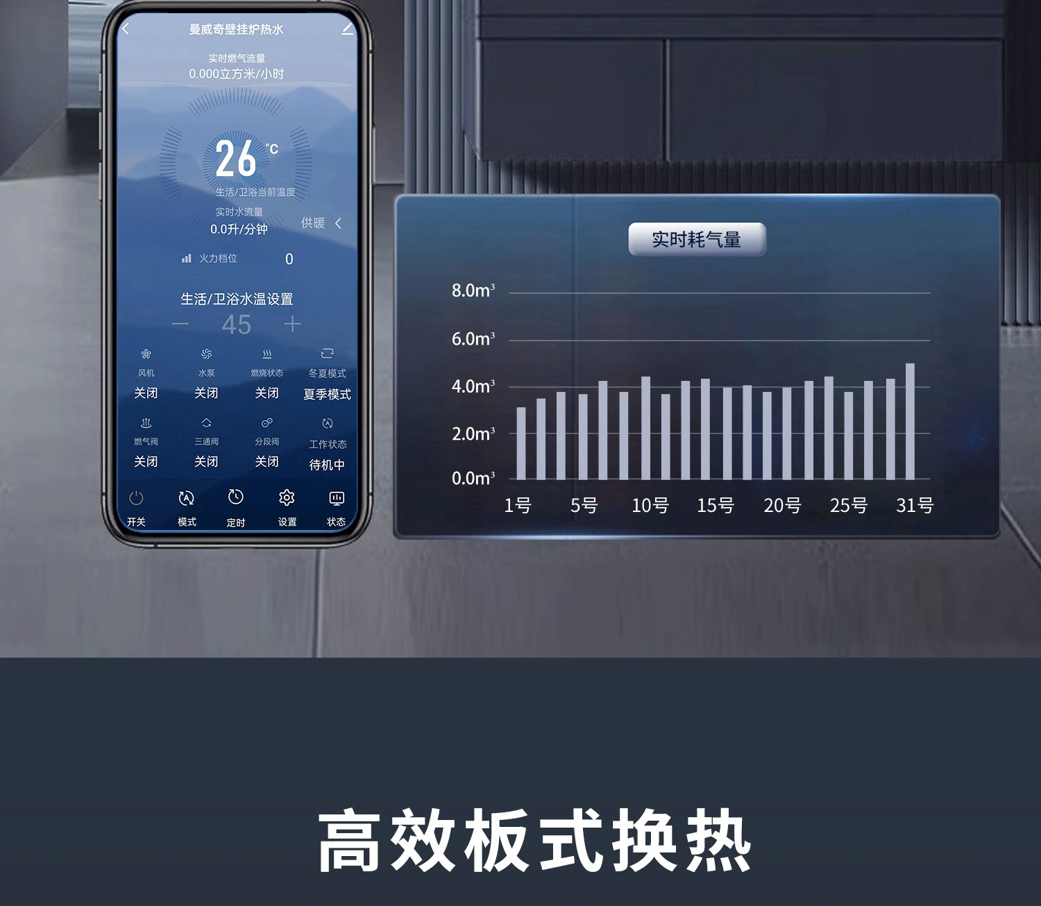 水星A系列数智燃气壁挂炉24KW:国产智能壁挂炉,手机APP控制,司服热水,气候补偿,远程售后,远程维修,热水稳定